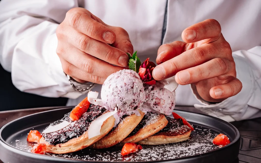 Schuif aan een tafeltje in een van onze fijne ruimtes, terwijl onze bakkers ambachtelijke pannenkoeken bakken met producten uit de streek. Eerlijk, herkenbaar en met aandacht bereid.